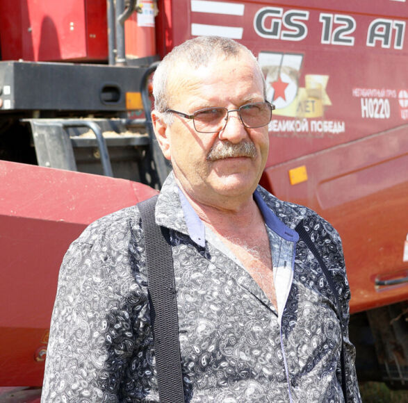 На уборке зерновых задействован костяк передовых комбайнеров и водителей. С полной отдачей на GS12A1 трудится настоящий профессионал Геннадий Колдушко. Который посвятил не один десяток лет благородному делу, трудясь на полях в период уборочной страды.