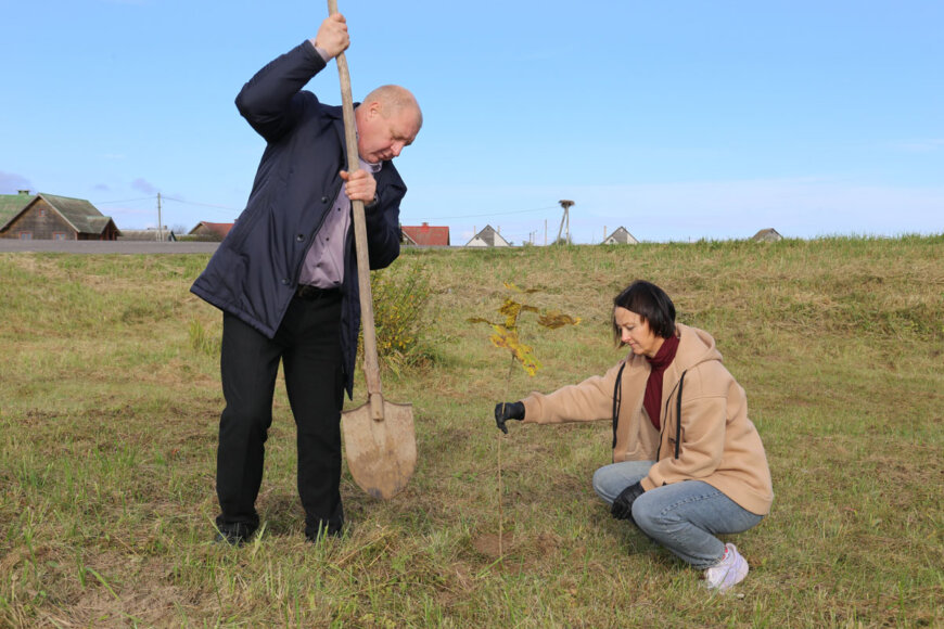 Дружно и слаженно кипела работа. Каждый участник с энтузиазмом вносил свой вклад в благое дело, понимая важность создания зелёных зон и сохранения окружающей среды. Молодые саженцы клёнов станут не только украшением агрогородка, но и живым напоминанием о героизме и самоотверженности предков, отстоявших мир на нашей земле. Спустя годы эти деревья будут дарить тень и прохладу, создавая комфортную среду для отдыха и общения, а также станут символом преемственности поколений и заботы о будущем.