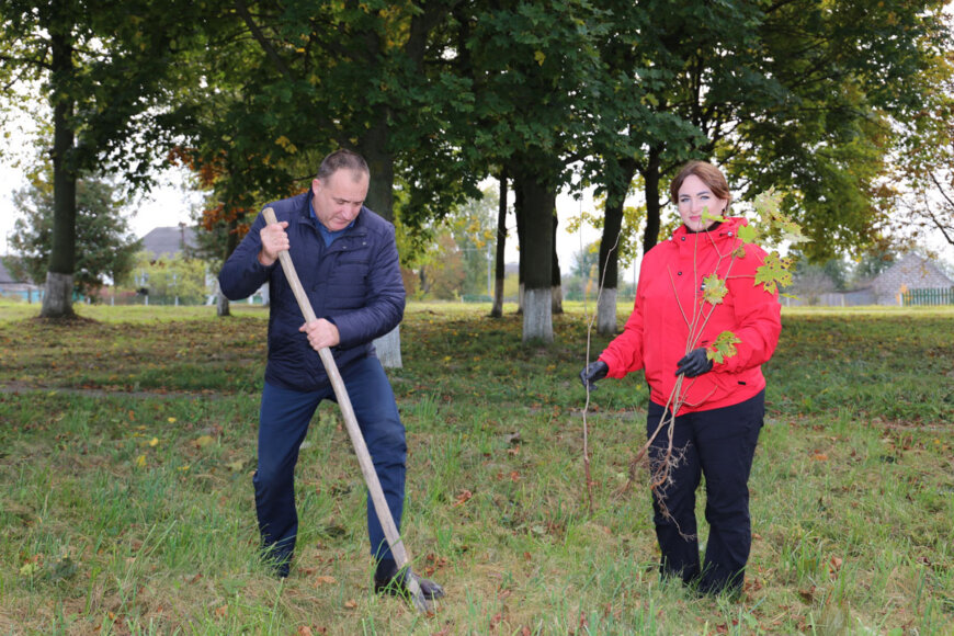 Более 80 саженцев молодых клёнов высадили в агрогородке Запрудье