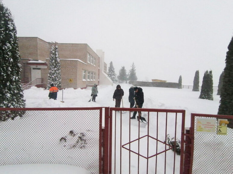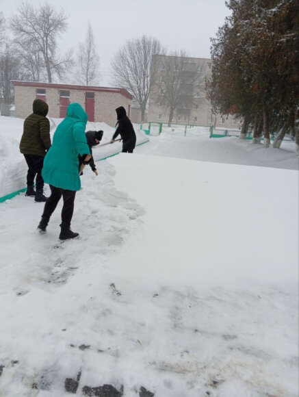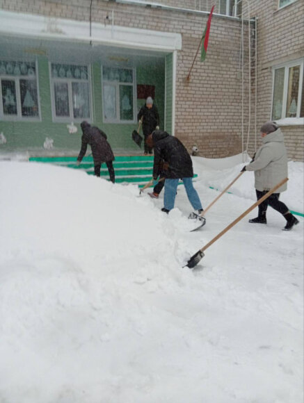 Работники учреждений образования помогают справиться со снеговыми завалами. Слаженно трудятся трудовые коллективы ГУО «Средняя школа №2 г. Круглое», ГУО «Детский сад №3 г. Круглое».