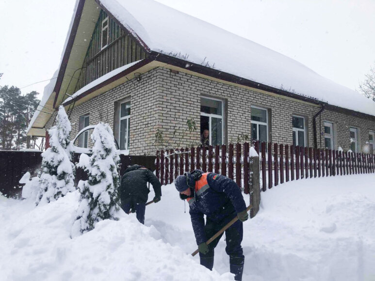 Работники Круглянского РЭС расчищают дорогу и придомовую территорию пенсионерам предприятия, проживающим в деревне Затетерка.