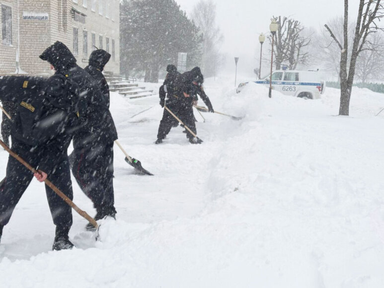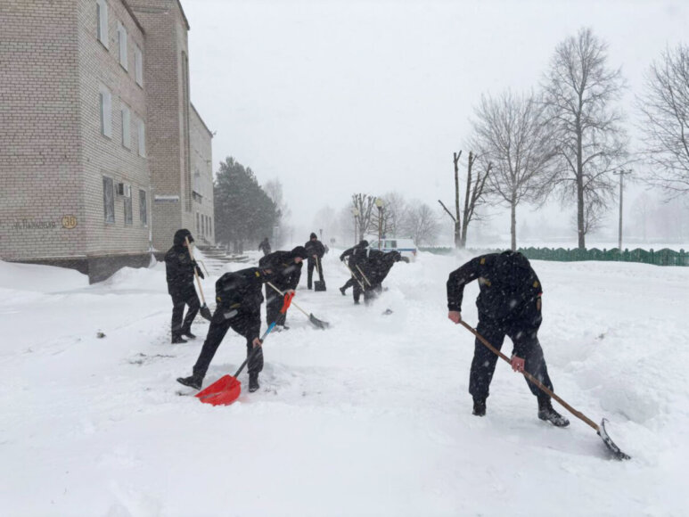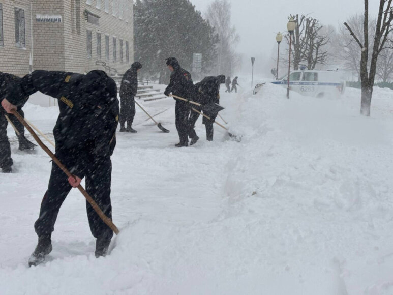 На расчистку территории от снежных завалов вышли и сотрудники силовых структур Круглянщины.
