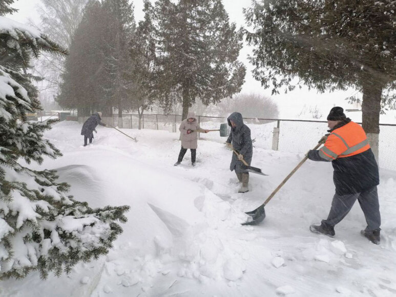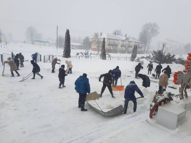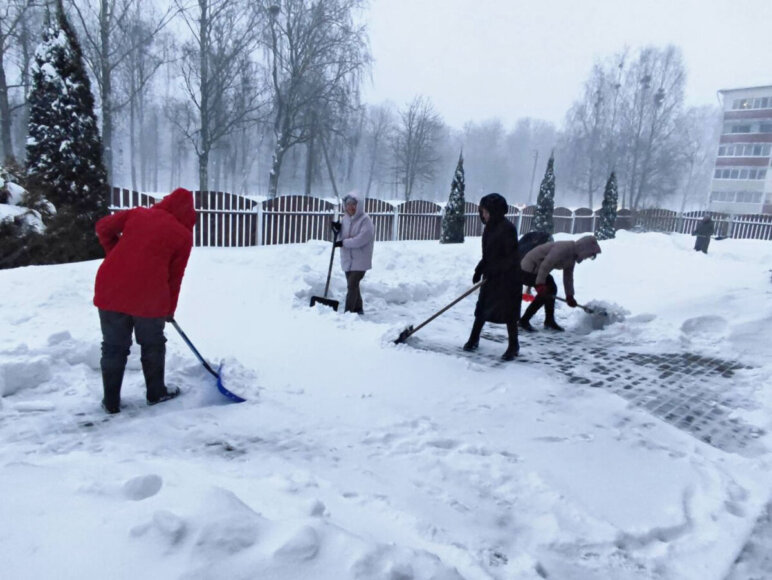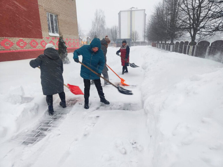 На помощь городу — все вместе. Круглянцы помогают коммунальным службам с уборкой снега