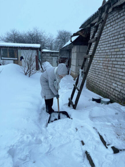 Нина Яковлевна проживает одна, и справиться с последствиями снегопада ей непросто. Наша молодёжь не осталась в стороне: вооружившись лопатами, они привели придомовую территорию в порядок.