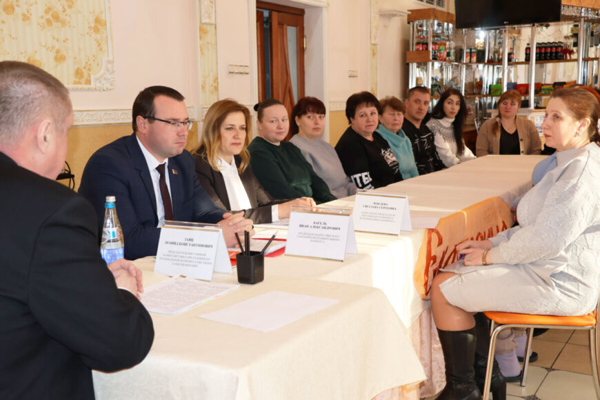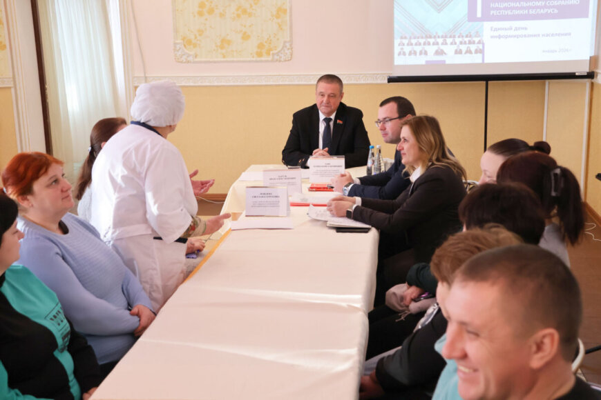 В рамках информирования населения с трудовым коллективом СООО «Прайд-Юнион» встретился председатель Постоянной комиссии Совета Республики Национального собрания Республики Беларусь по региональной политике и местному самоуправлению Леонид Заяц. Участие во встрече также приняли председатель райисполкома Иван Багель и заместитель председателя Светлана Лебедева.