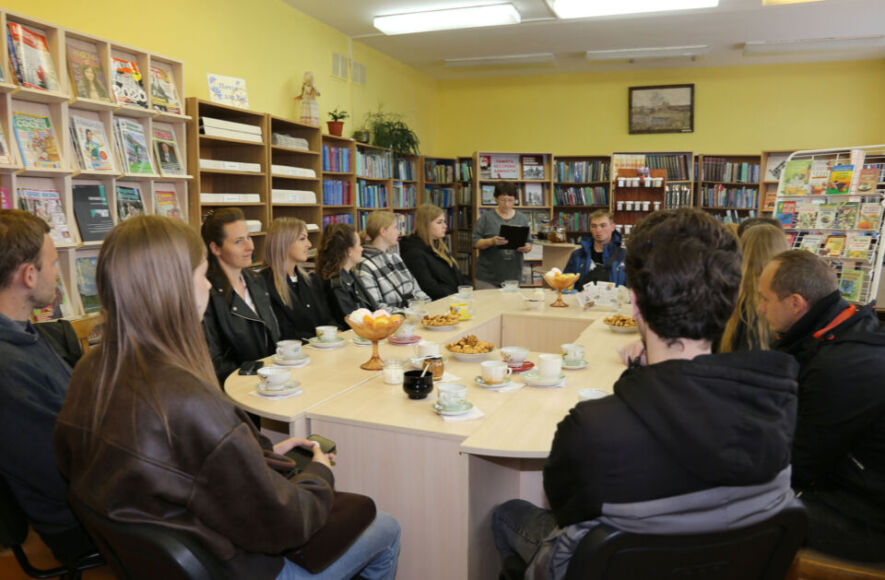 Следующим пунктом следования стала районная библиотека, где ее сотрудниками была подготовлена целая экскурсионная программа. С огромным удовольствием молодые люди побывали в детско-юношеском секторе, в читальном зале, попробовали себя в роли работников библиотечного дела, охотно отвечали на вопросы викторины, в основном касающиеся детских фильмов и мультфильмов. Много интересного и полезного узнали о чае, во время чаепития за круглым столом.