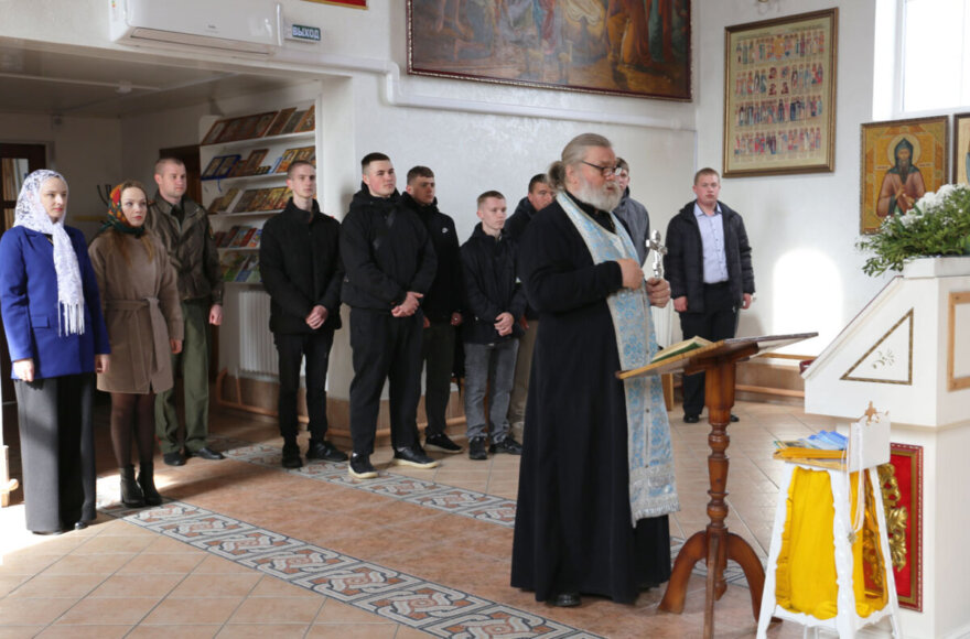 Закончилось мероприятие посещением Свято-Троицкого православного храма г. Круглое, где настоятель храма, протоиерей Геннадий Кожановский отслужил молебен на благое дело и произнёс напутственную речь в адрес призывников, а также вручил им нательные крестики, иконы и свечи.