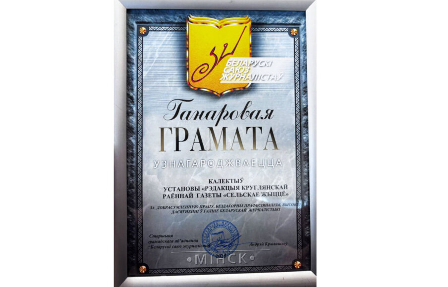 Почетной грамоты ОО «Белорусский союз журналистов» за добросовестный труд, безупречный профессионализм, высокие достижения в сфере белорусской журналистики удостоен коллектив редакции Круглянской районной газеты «Сельскае жыццё».