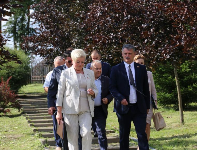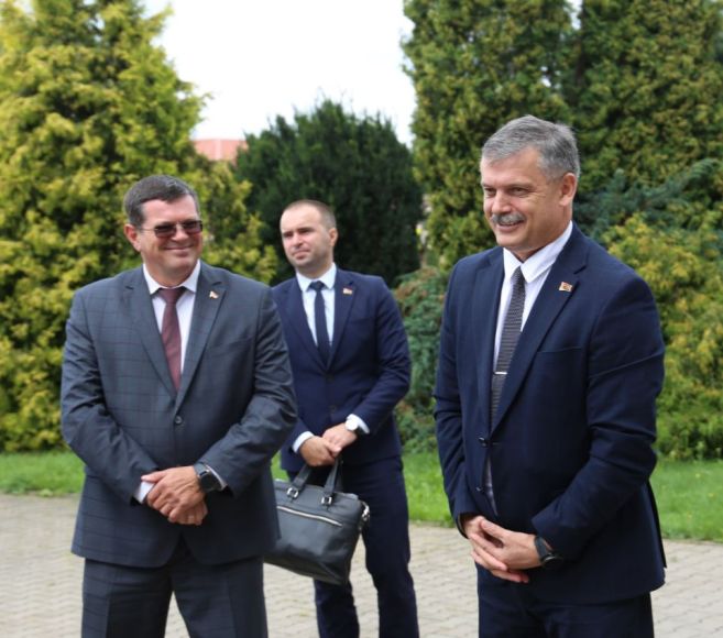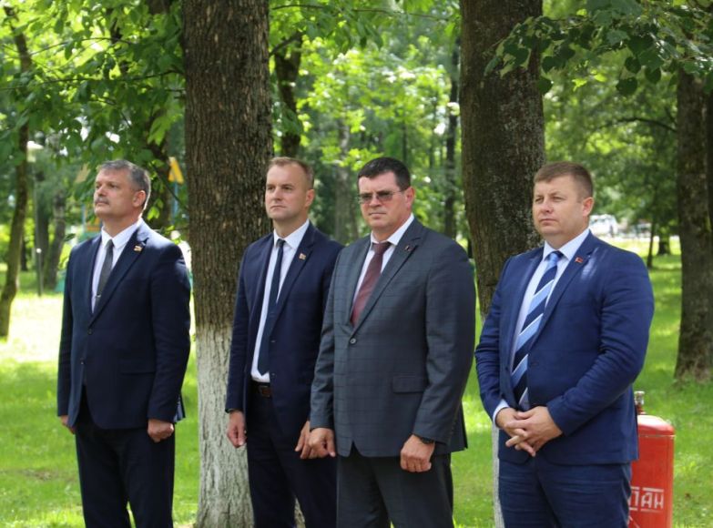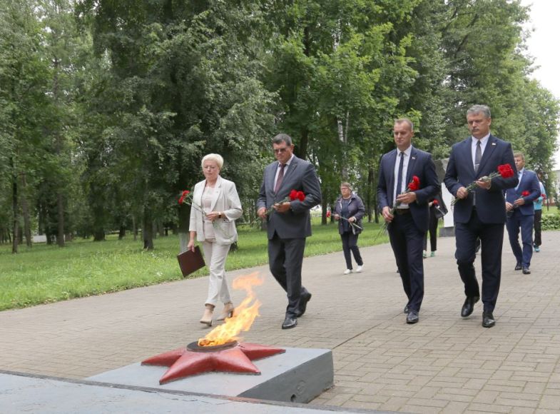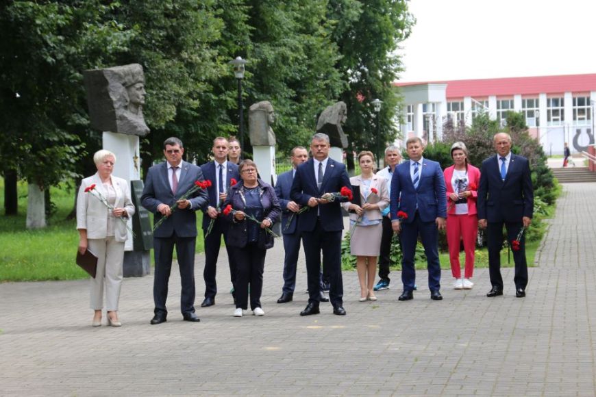В начале визита Сергей Михайлович и его сопровождающие посетили Аллею Героев в г. Круглое и возложили цветы к обелиску «ОБЗОР».