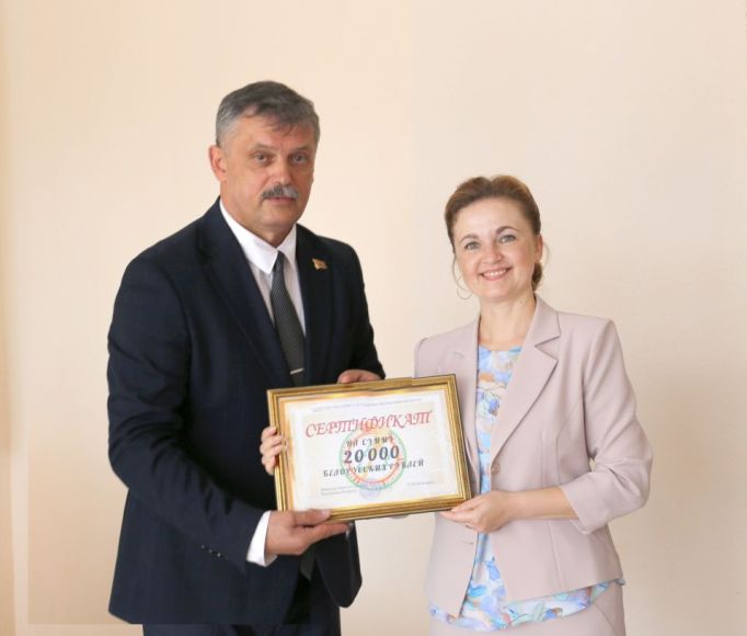 Кроме того, Сергей Ковальчук вручил заведующему сектором спорта и туризма райисполкома Светлане Логосовой сертификат на сумму 20 000 рублей на укрепление материально-технической части спортивных учреждений района.