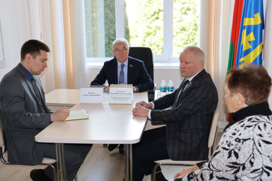Программа визита в наш район, как всегда, разноплановая и насыщенная. Началась она с приема граждан, который проходил в здании райисполкома. Одновременно Валерий Малашко проводил и прямую телефонную линию. Участие в приеме граждан принял председатель комиссии по образованию, культуре, науке и молодежной политике Молодежного совета при Палате представителей Национального собрания Республики Беларусь Сергей Листопад.