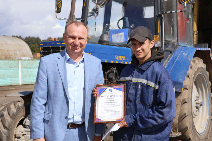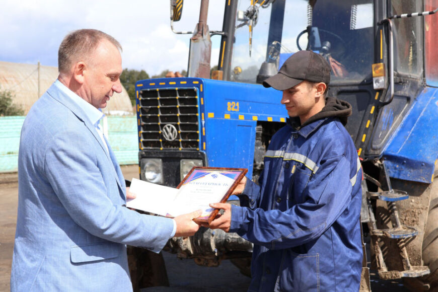 Заслуженные слова благодарности и подарки за добросовестный труд буквально вчера принимали передовики ОАО «Круглянская Искра» Сергей Гарючко, Алексей Кононов и Владимир Клещиков, поздравить которых с высокими показателями в жатве-2025 приезжали заместитель председателя Круглянского райисполкома Светлана Лебедева, председатель областной организации профсоюза Белэнерготопгаз Юрий Романьков, председатель РК профсоюза работников АПК Алла Станкевич и руководитель сельхозпредприятия Дмитрий Миклашевский.