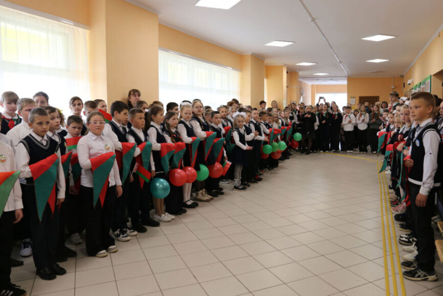 Звучит гимн Республики Беларусь и торжественная линейка объявляется открытой.