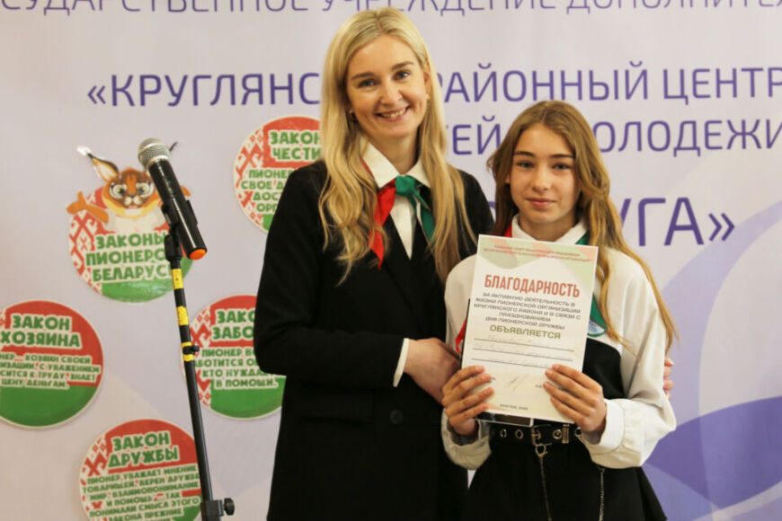 Также к празднику пионерской дружбы были отмечены и поощрены пионеры и октябрята Круглянщины, которые в течение учебного года принимали активное участие в различных акциях, конкурсах, проектах районного и областного уровней. Заслуженные награды им вручила председатель районного совета ОО «БРПО» Наталья Роговицкая.