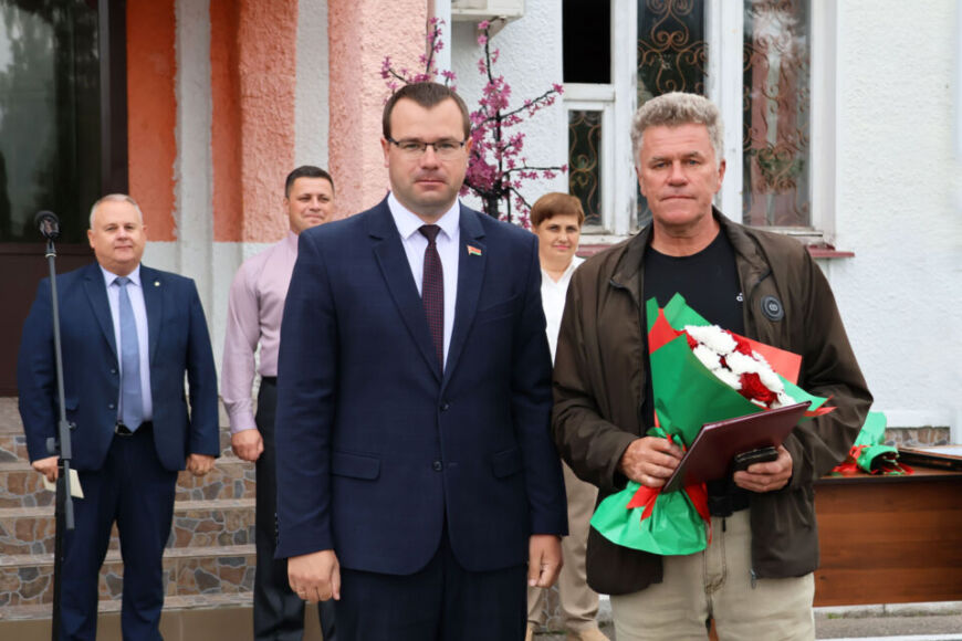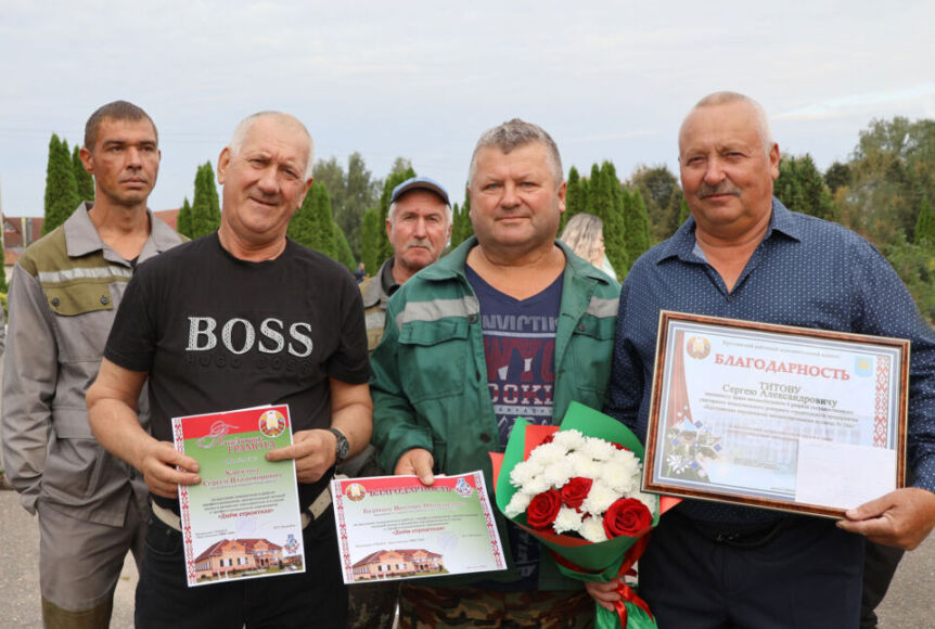 Поздравить наших уважаемых строителей с их предстоящим профессиональным праздником, который отмечается в ближайшее воскресенье, пришли председатель районного исполнительного комитета Иван Багель, председатель районного Совета депутатов Мирослав Арсоба, заместитель председателя райисполкома Александр Смирнов и председатель РК профсоюза работников АПК Алла Станкевич.