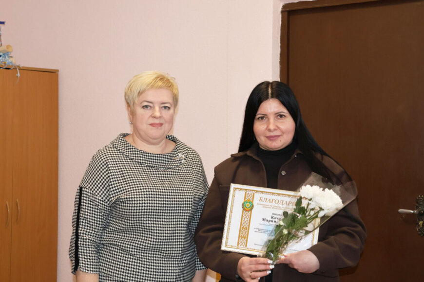 Благодарности комитета по труду, занятости и социальной защите Могилёвского облисполкома были объявлены работникам этого же отделения Елене Крыжановской и Веронике Сундуковой, а также специалисту по социальной работе Марине Киселёвой.