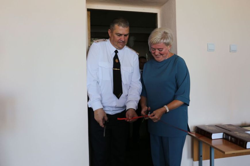 Сегодня в рамках празднования 100-летнего юбилея районного отдела внутренних дел в Круглянском РОВД состоялось торжественное открытие музейной комнаты. Право перерезать красную ленточку было предоставлено заместителю председателя райисполкома Анжеле Лукашевич и начальнику РОВД Александру Дроздову.