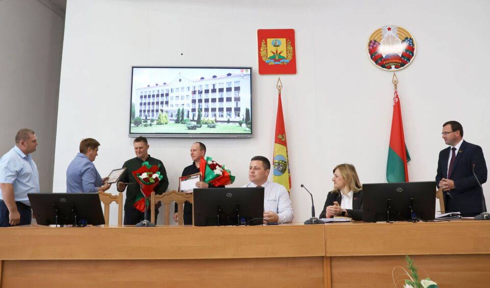 Под звучные аплодисменты сидящих в зале комбайнерам-«трёхтысячникам» Павлу Кирьянову и Петру Барсукову вручены Благодарственные письма комитета по сельскому хозяйству и продовольствию Могилёвского облисполкома и Круглянского райисполкома, а также заслуженные награды от сельхозпредприятия и райкома профсоюза работников АПК.