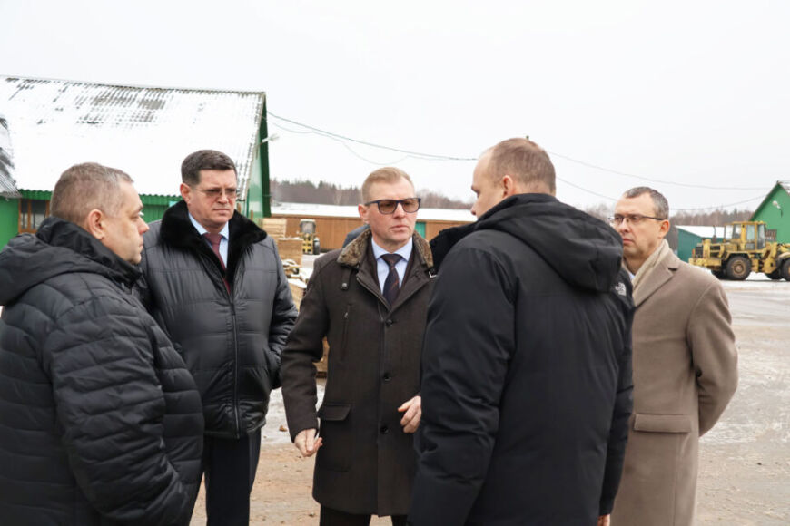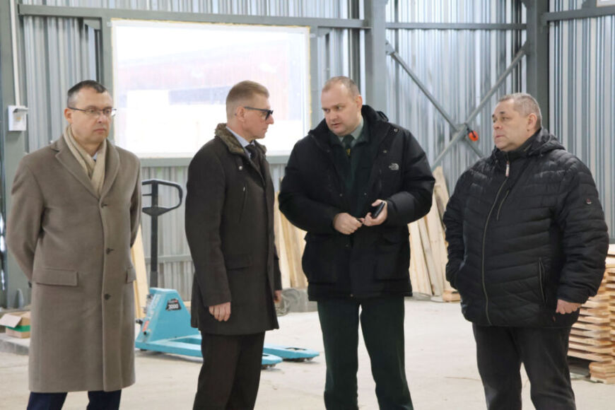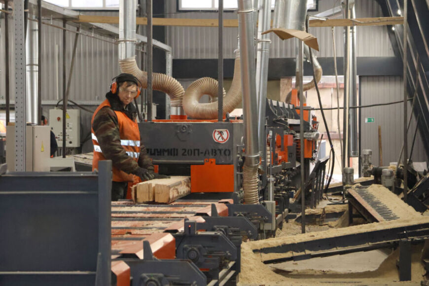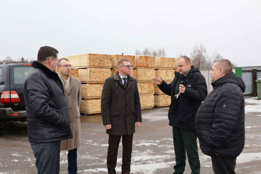 Далее гости в сопровождении директора ГЛХУ «Тетеринское» Василия Казуна посетили цех деревообработки в д. Волковщина, где воочию смогли посмотреть на отдельные этапы подготовки древесины на экспорт.