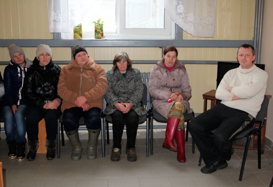 Встреча прошла после утренней дойки в уютной, украшенной цветами комнате отдыха, когда старательные труженики вместе с заведующим МТК Вадимом Ковалёвым поудобнее разместились на своих стульях. Первой к коллективу обратилась Е. Милевская. Елена Викторовна подчеркнула, что в традиционные Дни животновода, проходящие в районе ежемесячно 12-го числа, похожим составом труженики данного молочно-товарного комплекса посещались не раз. Она призывала их, не стесняясь, озвучивать свои вопросы и проблемы, если таковые имеются. На что слышались вполне убедительные реплики: «Всё у нас хорошо: работа есть, заработная плата достойная, условия труда тоже. Что ещё нужно?..»