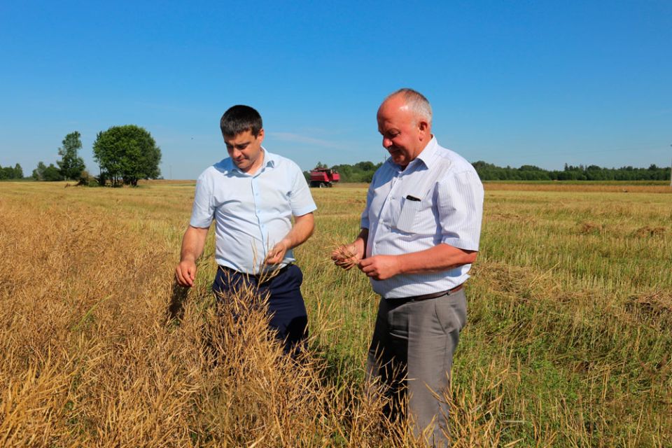 В ОАО «Круглянский Рассвет» ход работ приехали проконтролировать начальник райсельхозпрода Алексей Гвоздёв и его заместитель Юрий Евсеев. Качеством работ они удовлетворены. Да и как иначе – уборку ведут многоопытные механизаторы. Среди них и Сергей Хмелевский. За штурвалом комбайна он уже седьмой сезон. Не раз становился «тысячником». Выходил победителем внутрихозяйственного трудового соревнования. Личный рекорд – 1400 тонн.