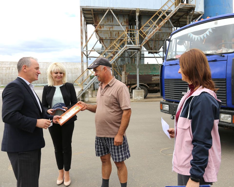 Повод приехать с Грамотой и денежными премиями был особый – водитель МАЗа Олег Костров стал «тысячником». Зная Олега Михайловича многие годы, такому успеху нисколько не удивился. Это уже добрая традиция. А самым рекордным, как помнится, для него был 2014 год, когда О. Костров по маршруту «поле-ток» перевез на стареньком автомобиле аж 3151 тонну зерна.