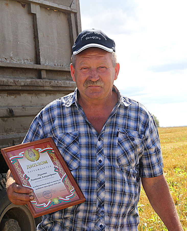 и с другими обязанностями справляется на «отлично». На тракторе МТЗ-3022 с ПТС-9 по количеству перевезённого зерна Александр Короткевич практически не уступает водителям,