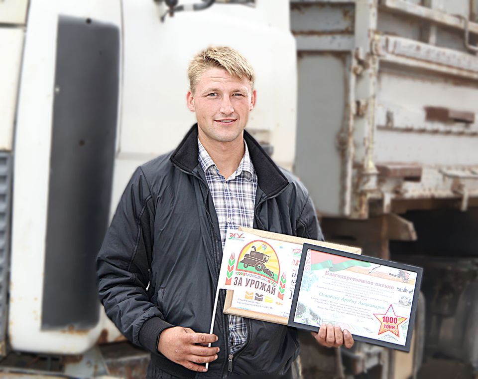 На прошедшей неделе к передовым транспортникам, преодолевшим почётный тысячный рубеж в перевозке убранного с полей урожая, примкнул молодой труженик КСУП...