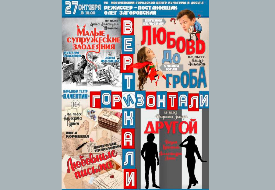 Постановку «Вертикали и горизонтали» представит 27 октября (четверг) на сцене Могилевского городского Центра культуры и досуга (ул.Первомайская, 34) народный театр...