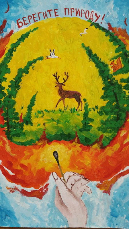 3 место – разделили две учащиеся городских школ, набрав одинаковое количество баллов (по 38) – Дарина Цыкунова из ГУО «Средняя школа №1 г. Круглое» – «Спасем природу от пожара», и Мария Пасюкова из ГУО «Средняя школа №2 г. Круглое» – «Сохрани природу родного края».