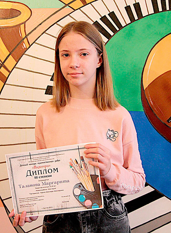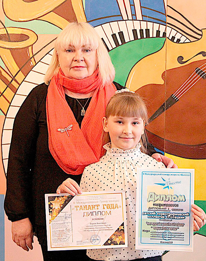 – Только в марте наши юные дарования завоевали 11 дипломов международного уровня, – делится радостными новостями директор Круглянской ДШИ Андрей Иванов. – Дипломантами І степени V Международного конкурса искусств «Высота», проходившего в Могилеве, стали детский хореографический коллектив «Потешки» (учитель А.М. Семенкова) и детский образцовый хореографический ансамбль «Кругляночка» (руководитель И.Г. Кононова). Диплома лауреата І степени этого же конкурса удостоена учащаяся Круглянской ДШИ Анастасия Бирюк (учитель Е.П. Иванова), Диплома лауреата ІІІ степени – дуэт «Браво» в составе Ксении Колошиной и Матвея Нестеровича (учитель Д.А. Смирнова), Диплома лауреата ІІІ степени – Екатерина Соп (учитель Н.А. Бирюк).