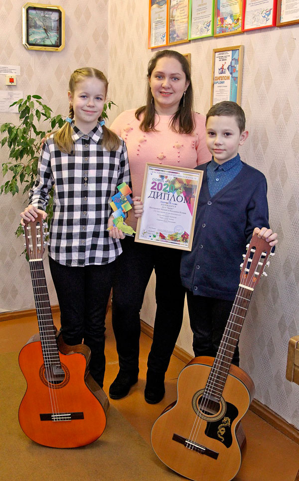 Кроме домристов в конкурсе «Гомельфест» приняли участие и юные гитаристы Ксения Колошина и Матвей Нестерович (преподаватель Диана Смирнова). Они приготовили дуэтную композицию «Todos a mirar». Их выступление принесло высокое звание лауреатов II степени в своей номинации.