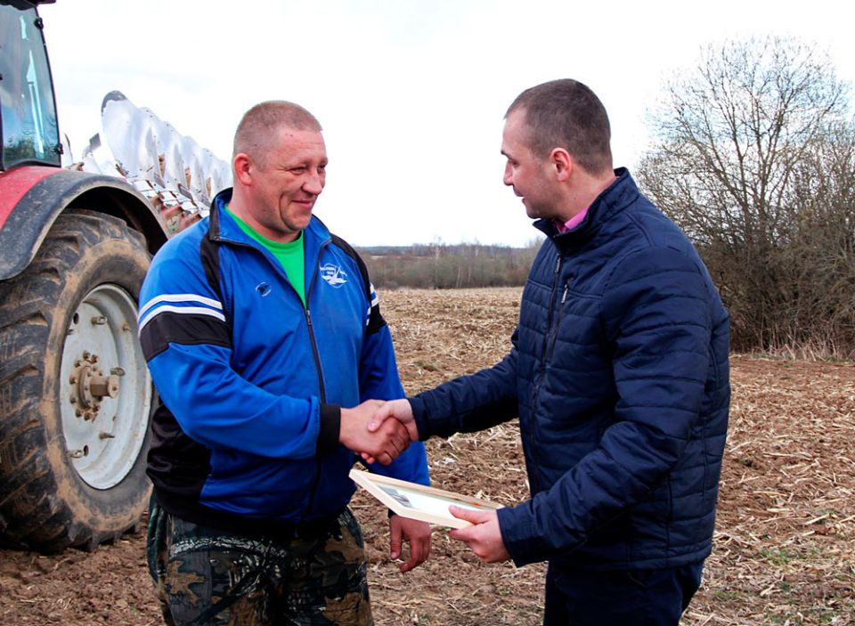Участвующий в мероприятии директор ОАО «Друть-Агро» Сергей Сазонов, как водится, также приехал к лучшим механизаторам не с пустыми руками – Евгению и Александру вручены еще и первые на посевной денежные премии. К слову, конверты с материальным вознаграждением от руководства сельхозпредприятий вручались и всем другим механизаторам Круглянщины, кто оказался в списке отличившихся по итогам первого этапа весенней посевной.