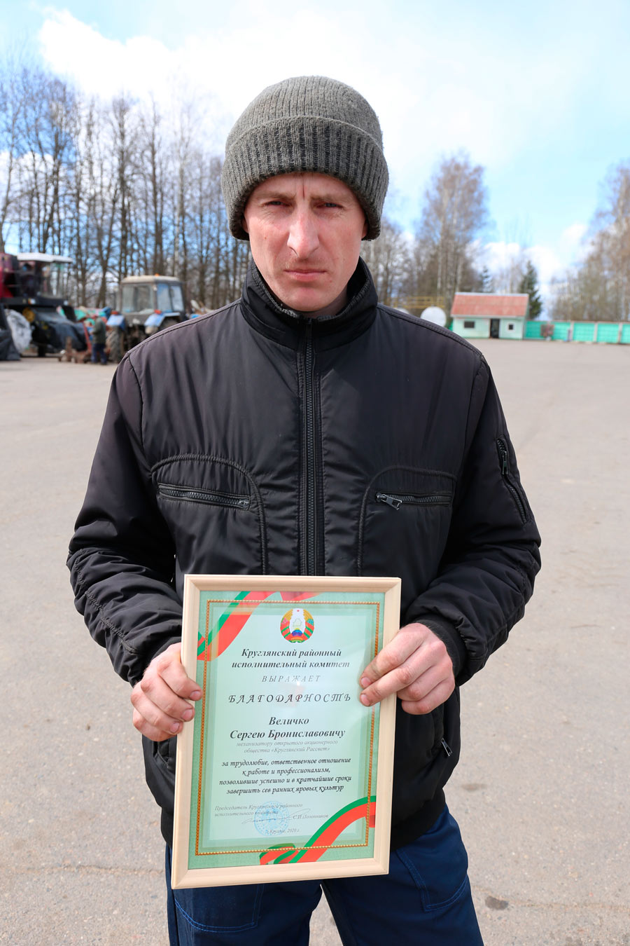 «За трудолюбие, ответственное отношение к работе и профессионализм, позволившие успешно и в кратчайшие сроки завершить сев ранних яровых культур» – с такими словами обратился в благодарственных письмах к лидерам посевной-2020 председатель Круглянского райисполкома Степан Полонников. Передовики из числа механизаторов замечены и отмечены практически в каждом из семи хозяйств.Имена и фамилии их хорошо известны. Но в том, видимо, и ценность каждого настоящего труженика, что его производственные успехи – не от случая к случаю, а ежегодные, постоянные.