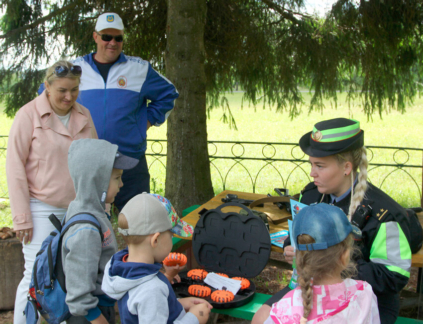 Особенно весело было на праздновании детям, для которых на залитой солнышком поляне была подготовлена викторина по правилам дорожного движения, а главное – выставка спецсредств, спецтехники, обмундирования и вооружения. Весёлой гурьбой ребятня то и дело обступала и стол, где всё это размещалось, и патрульную машину ГАИ, где можно было не просто вдоволь «порулить», посигналить, включить проблесковые маячки, но и передать привет родителям в громкоговоритель.
