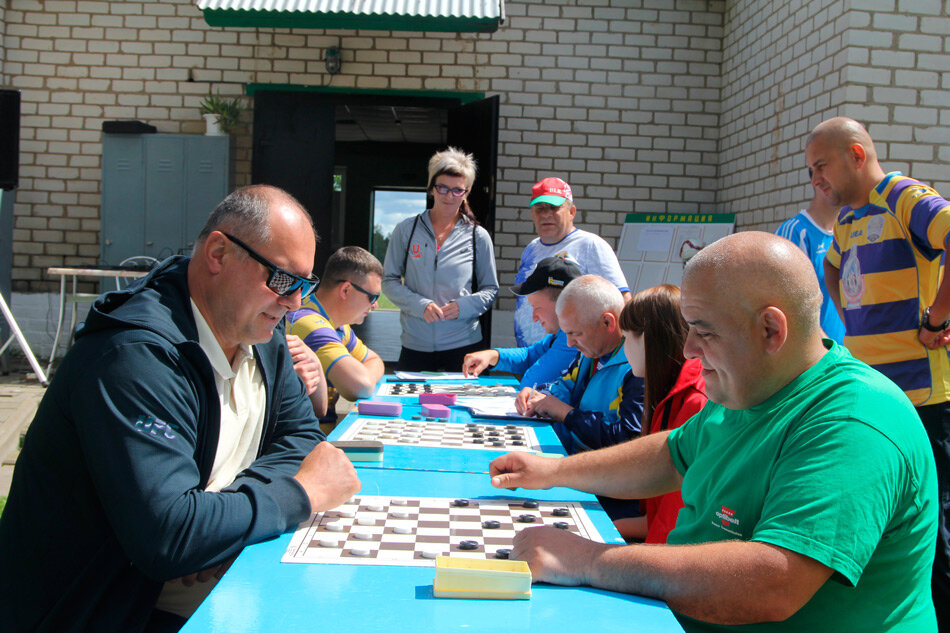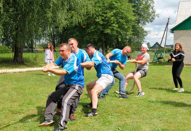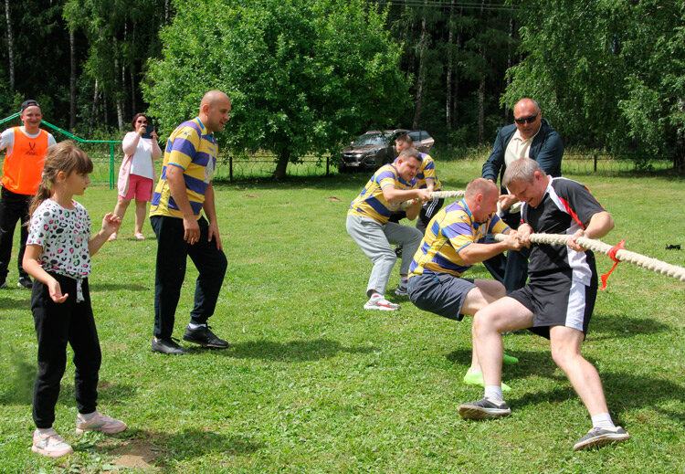 Более серьёзные испытания ожидали тем временем взрослых. Разделившись на три команды, они соревновались в дартс, настольный теннис, шашки. В программу соревнований также входила стрельба из пневматической винтовки, футбол и перетягивание каната. Словом, было очень и очень здорово.