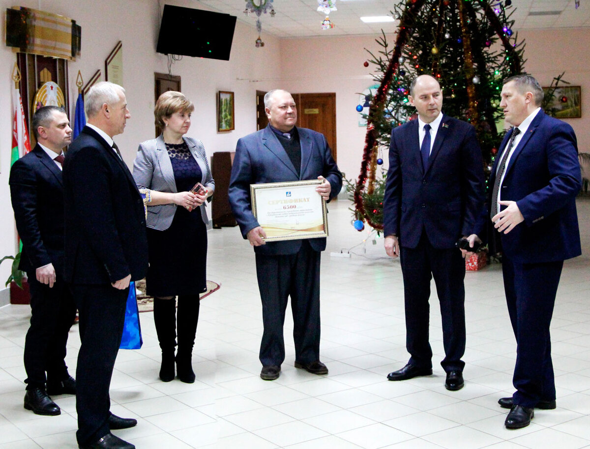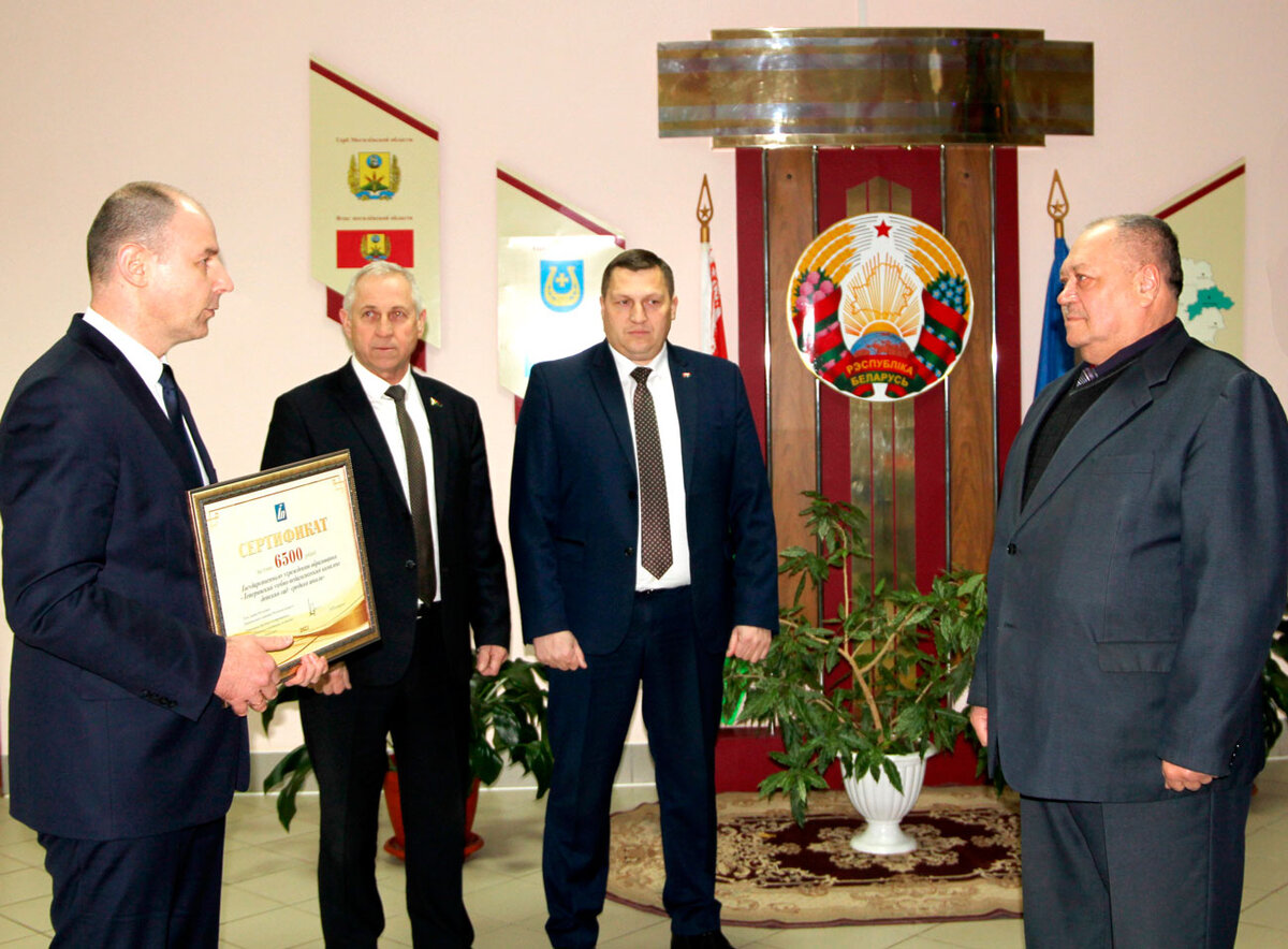 В рамках масштабной новогодней благотворительной акция «Наши дети», которая проходит в Беларуси с 14 декабря 2021 года по 14 января 2022-го., вчера наш район с весьма приятным поводом для визита посетил член Совета республики Национального собрания Республики Беларусь, Генеральный директор государственного производственного объединения по топливу и газификации «Белтопгаз» Алексей Кушнаренко. Он вручил директору ГУО «Тетеринский УПК детский сад – средняя школа» Владимиру Алехновичу сертификат на сумму 6500 рублей для укрепления материально-технической базы учреждения.
