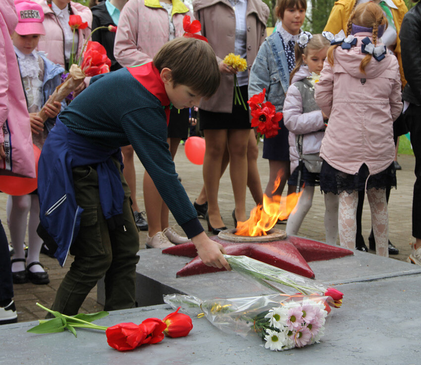 К подножию памятника «ОБЗОР» учащиеся из всех школ района возложили живые цветы.