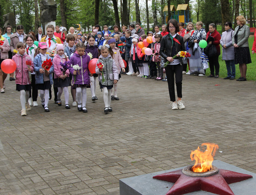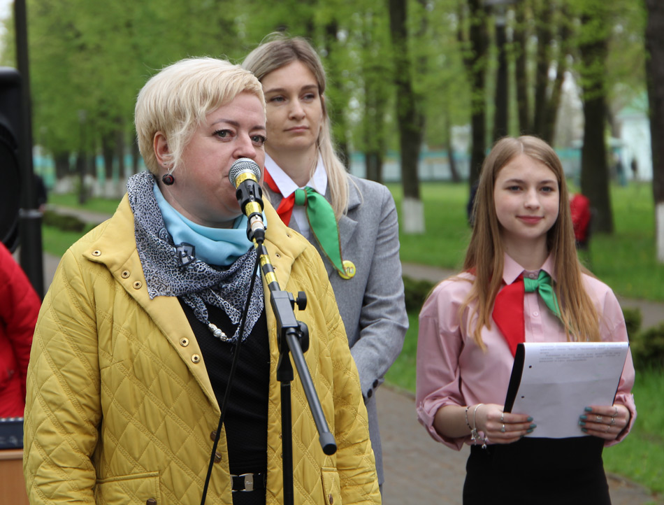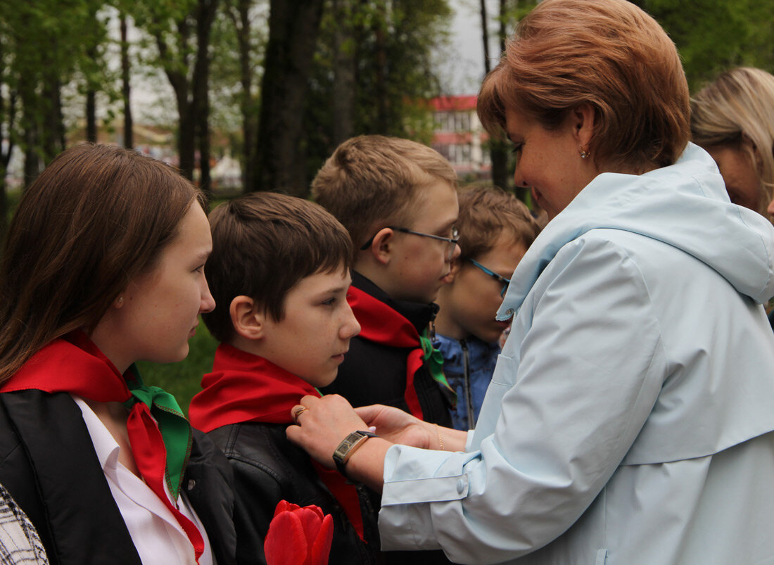 На торжественной линейке, которая состоялась в центральном парке культуры и отдыха, сегодня в дружную пионерскую семью вступали самые юные участники – октябрята. Право повязать красно-зеленые галстуки будущим пионерам предоставилось гостям праздника и старшим вожатым.
