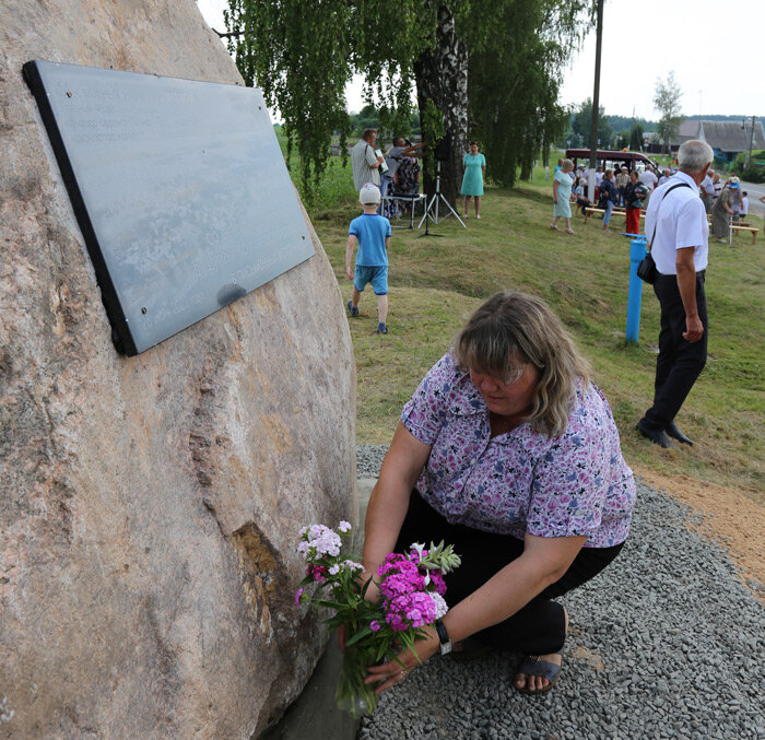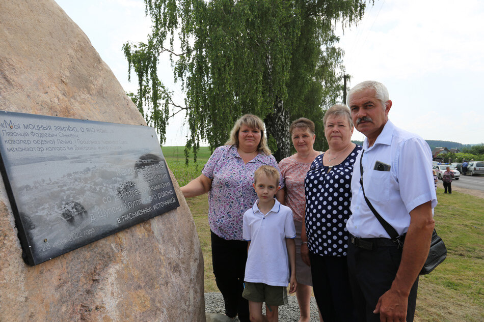 В честь знакового события в центре деревни установлен памятный знак. Надпись на мемориальной доске начинается со слов самого известного механизатора кавалера ордена Ленина и Трудового Красного Знамени Леонтия Синькевича: «Мы моцныя зямлёю, а яна намі».