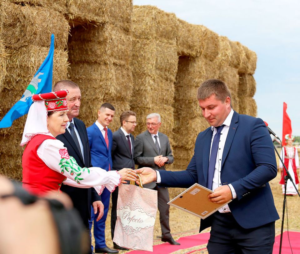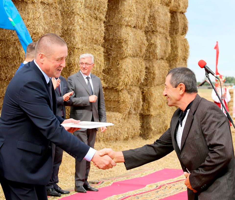 Працавітыя людзі – залаты фонд зямлі Магілёўскай. Першым старшыня аблвыканкама, прычым, без усялякіх запісаў, агучвае прозвішчы членаў камбайнавага экіпажа з СВК “Калгас ”Радзіма” Бялыніцкага раёна Мікалая Дарэчкіна і Канстанціна Саладухі, якія намалацілі амаль 4 тысячы тон зерня. А з улікам рапса яны выдалі з бункера ўборачнага камбайна 4,5 тысячы тон.