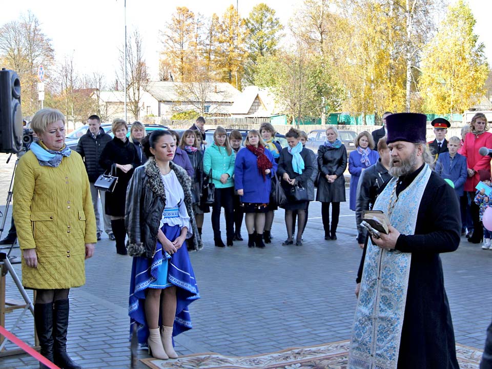 Обряд освящения нового дома провел настоятель Свято-Троицкого православного храма, протоиерей Геннадий, пожелав его жильцам мира и благополучия, подчеркнув значение института семьи, материнства и воспитания детей в современном обществе.