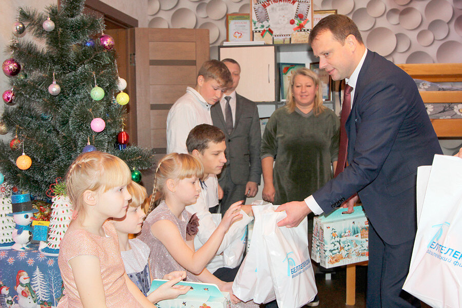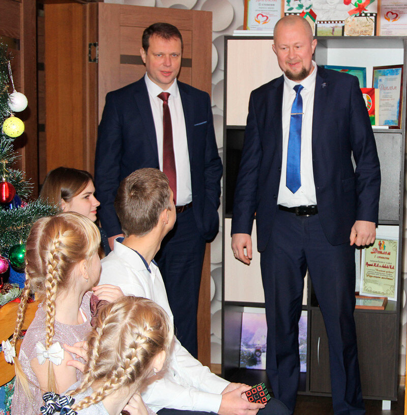 С приближающимися праздниками эту не совсем обычную, но такую большую, яркую и дружную семью, в которой на сегодняшний день подрастает 9 несовершеннолетних детей (6 из них – приёмные), первыми поздравили заместитель председателя Круглянского районного исполнительного комитета Анжела Лукашевич и начальник отдела по образованию райисполкома Марина Токарева. Чуть позже к ним присоединились и представители Могилёвского филиала РУП «Белтелеком»: заместитель директора Вадим Филипченко и председатель первичной профсоюзной организации Владимир Кива. Стоит отметить, что руководство данного филиала шефствует над воспитанниками ДДСТ нашего города с самого момента его основания, периодически навещая их с подарками, делясь заботой и участием.