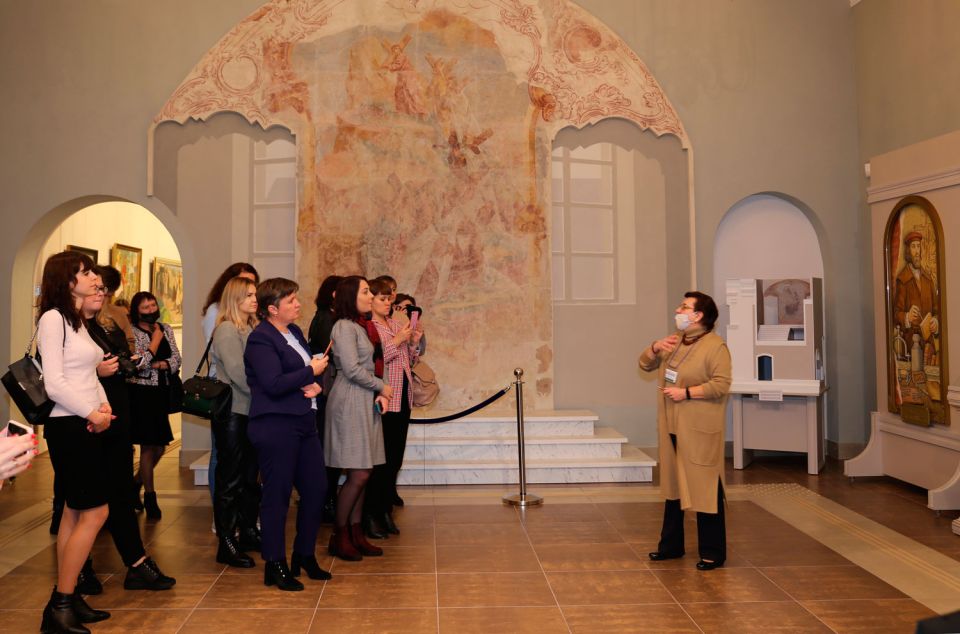 Участники пресс-тура ещё раз убедились и в том, что в Могилёве богатое духовное наследие разных религий и вероисповеданий. Они представлены знаковыми культовыми сооружениями. Среди посещённых памятников архитектуры – Могилёвский кафедральный костел Святого Станислава. Построен он в стиле барокко в 1738-1752 годах. Храм уникален еще и благодаря частично сохранившимся древним фрескам.