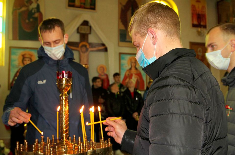 В целом участников мероприятия ожидала разноплановая духовно-патриотическая программа. И первым пунктом посещения стал Свято-Троицкий православный храм г. Круглое, в котором призывников и их сопровождающих встречал настоятель храма, протоиерей Геннадий Кожановский. Он отслужил молебен на благое дело и выразил тёплые напутствия в адрес виновников торжества, а также вручил им подарки, которые будут оберегать их вдалеке от дома (нательные крестики, иконы и свечи). Посетили будущие защитники Отечества и братскую могилу, расположенную недалеко от храма, почтили память погибших в годы Великой Отечественной войны минутой молчания и возложили живые цветы. В патриотическом ключе прошла и экскурсия по районному историко-краеведческому музею, в ходе которой особое внимание уделялось воспоминаниям о бесценном подвиге наших земляков, отстоявших мир и независимость в борьбе с фашизмом.