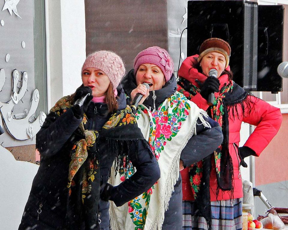 Весело и оживленно в минувшие выходные на площади у районного Дома культуры прошло народное гулянье «Коляды». И пусть сырая и промозглая погода, а также беспрерывно падающий мокрый снег не позволили собраться большому количеству зрителей, тем не менее, артисты РДК постарались от души, чтобы подарить всем присутствовавшим праздничное настроение и массу положительных эмоций. Яркая театрализованная программа, а также мини-концерт с участием народных коллективов «Вераснянка» и «Крынічанька» привлекли внимание и взрослых, и детворы, которая не только с азартом слетала на ледянках и «ватрушках» с установленной рядом горки, но и весело отплясывала вместе с главной героиней колядных обрядов – озорной Козой. Здесь же можно было приобрести за символическую цену и сувенир на память – небольшие симпатичные вещицы, изготовленные собственными руками, предлагали всем желающим «коробейники» из районного Дома ремесел.