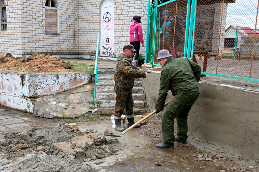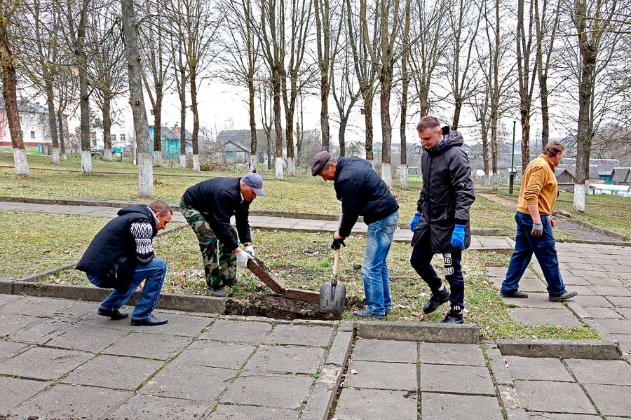 В рамках республиканского субботника в Круглом активными темпами шли работы по благоустройству сквера «Спуск к реке», где были задействованы работники УКП «Жилкомхоз», центра обеспечения деятельности бюджетных организаций, отдела идеологической работы, культуры и по делам молодежи райисполкома и ГУКДСП «Круглянская ПМК-266».