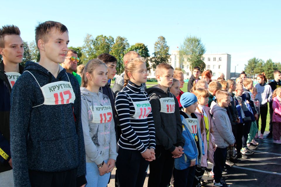 Впечатляющий патриотический флешмоб подготовили к спортивному празднику активисты Круглянской РО ОО «БРСМ» и девчата-черлидеры. С воздушными шарами и флагами пришли поддержать участников кросса болельщики, которых даже сложно было сосчитать на трибунах. В целом участие в кроссе принимали порядка восьмидесяти юных спортсменов из числа учащихся школ района.