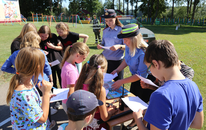 Участникам – ребятам разных возрастов – предложено было пройти по шести тематическим станциям, где необходимо было выполнить всяческие задания. Так, на площадке РОЧС и РОВД нужно было ответить на вопросы викторины о безопасности жизнедеятельности. На станции отдела по образованию участники разгадывали ребусы. Площадка, представленная работниками районного Дома культуры, предлагала ребятам мозаику и подвижные игры. Молодежная станция – викторину о деятельности БРСМ. На станции по теме медицины ребята рассказывали о правилах оказания первой медицинской помощи и др.