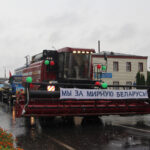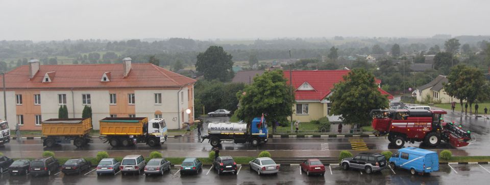 Открывал колонну, которая собрала в себе десятки сотен людей, своеобразный парад техники. Главенствующая роль была отведена, конечно же, зерноуборочному комбайну с символической надписью.